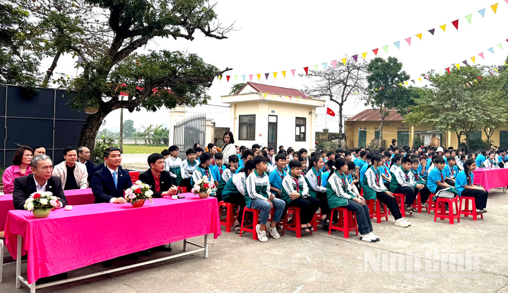Dự chương trình có lãnh đạo Hội Chữ thập đỏ tỉnh, Công ty Bảo Việt nhân thọ Ninh Bình, các thầy, cô giáo và các em học sinh Trường THCS Ninh Hoà.