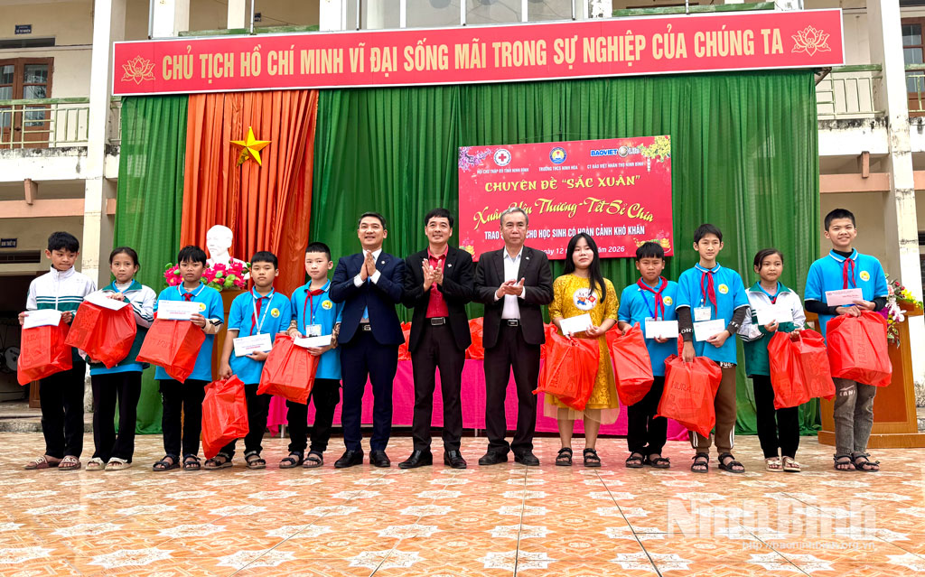 *Chiều ngày 12/2, Hội Chữ thập đỏ tỉnh phối hợp với Công ty Bảo Việt nhân thọ Ninh Bình và các nhà hảo tâm tổ chức chương trình “Xuân yêu thương - Tết sẻ chia” trao quà Tết cho học sinh có hoàn cảnh khó khăn Trường THCS Ninh Hoà, phường Tây Hoa Lư.