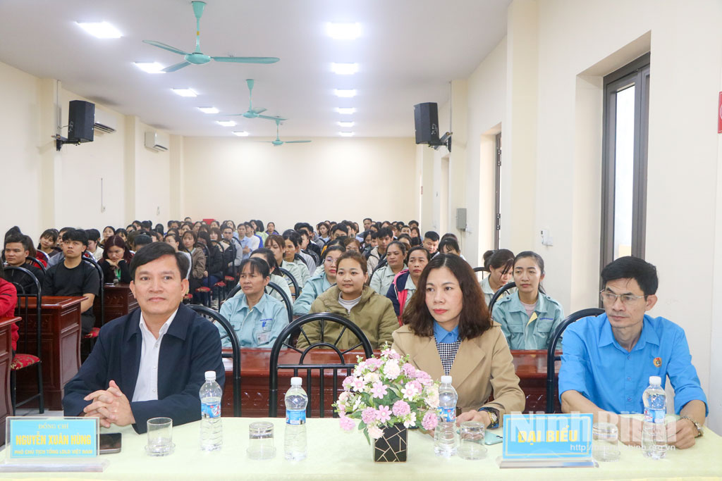 Phát biểu tại đây, đồng chí Nguyễn Hải Long, Tỉnh ủy viên, Chủ tịch LĐLĐ tỉnh đã báo cáo sơ bộ một số nét cơ bản về hoạt động của các cấp công đoàn của tỉnh ta trong thời gian qua đã luôn chủ động phối hợp với chính quyền, doanh nghiệp chăm lo đời sống vật chất, tinh thần cho đoàn viên, người lao động. Các cấp công đoàn thường xuyên theo dõi, nắm tình hình và giám sát việc thực hiện chế độ chính sách, thanh toán tiền lương, tiền thưởng, nhất là trong dịp lễ, Tết; chủ động phối hợp giải quyết kịp thời những vướng mắc, không để xảy ra tranh chấp lao động, ngừng việc tập thể. Các tổ chức công đoàn đảm bảo quyền lợi hợp pháp, chính đáng của người lao động, góp phần ổn định tình hình sản xuất tại doanh nghiệp và an ninh trật tự trên địa bàn.