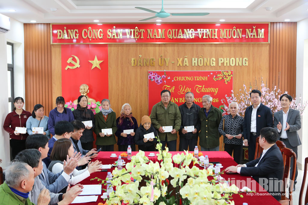 *Thừa ủy quyền của đồng chí Nguyễn Thị Thanh, Ủy viên Trung ương Đảng, Phó Chủ tịch Quốc hội, chiều 12/2, đồng chí Phạm Trọng Cường, Trợ lý Phó Chủ tịch Quốc hội đã đến thăm, chúc Tết và trao quà cho các gia đình chính sách, người có công với cách mạng, đối tượng bảo trợ xã hội tại 3 xã: Hải Thịnh, Quỹ Nhất và Hồng Phong. Cùng dự có các đồng chí Tỉnh ủy viên: Nguyễn Hải Dũng, Phó Trưởng Đoàn đại biểu Quốc hội (ĐBQH) tỉnh; Vũ Đức Thọ, Chánh Văn phòng Đoàn ĐBQH và HĐND tỉnh.