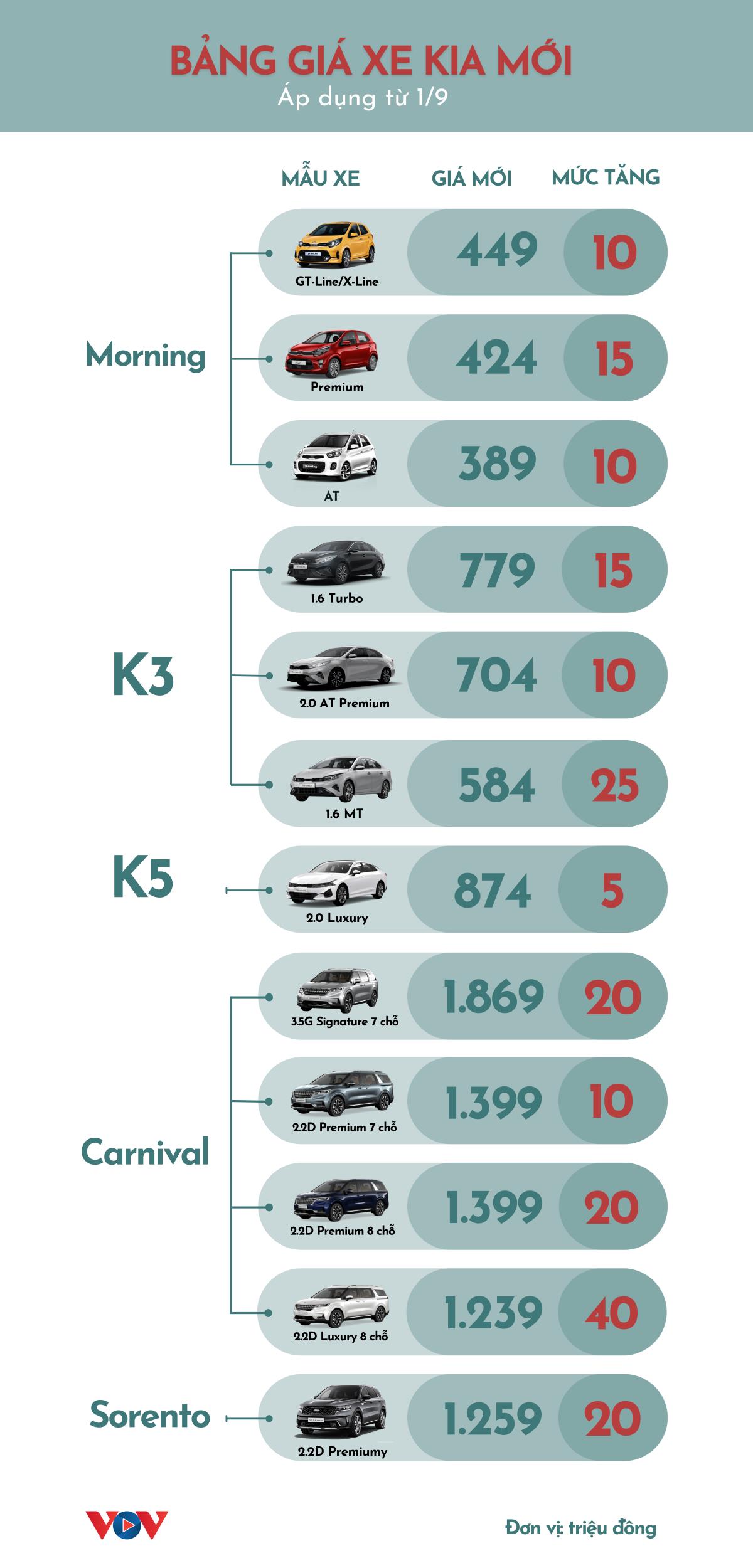 Nhiều mẫu xe Kia tăng giá từ 10 - 40 triệu đồng