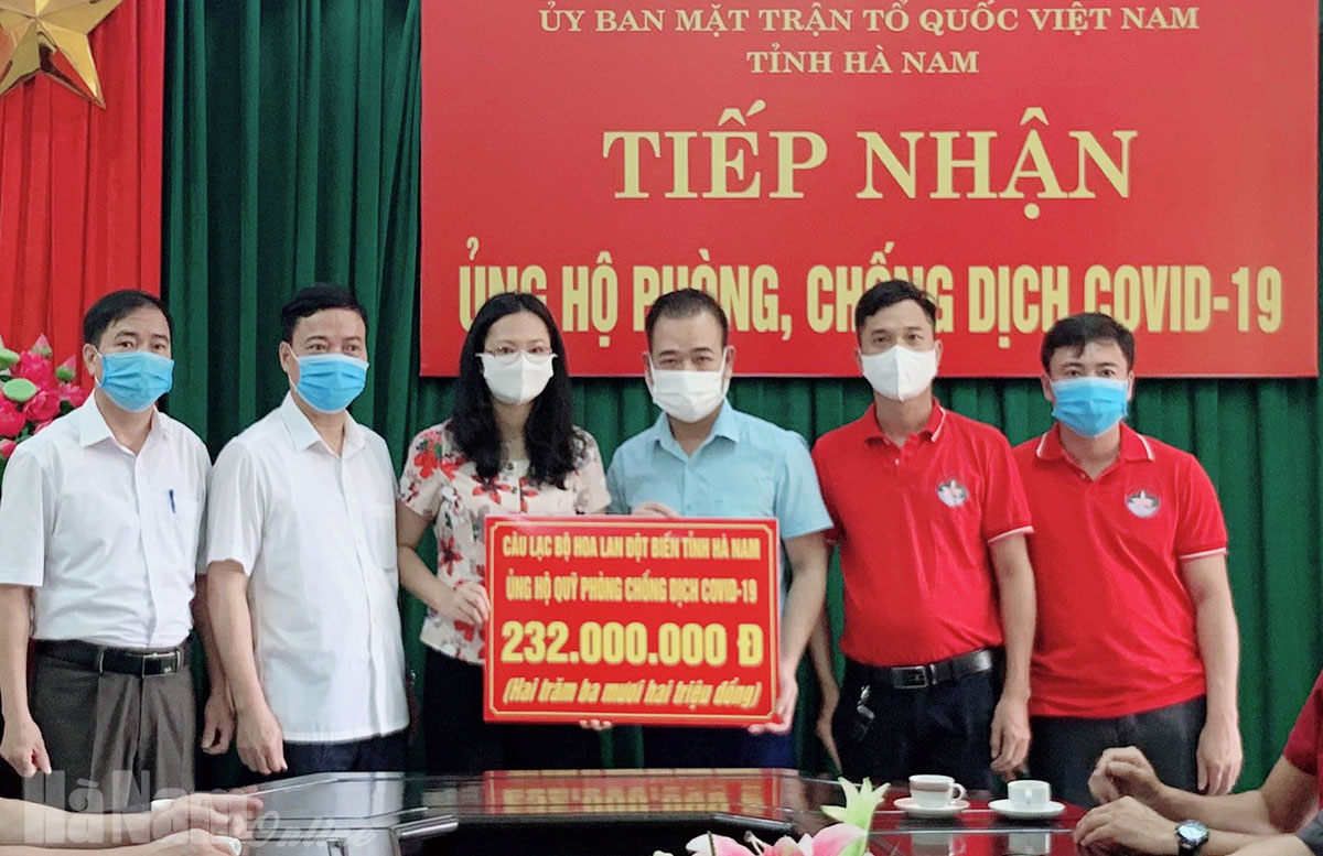 Trước đó, Chủ Vườn lan Bố Sữa (Lam Hạ, thành phố Phủ Lý) cũng đã đến trao cho đại diện Ban Thường trực Ủy ban MTTQ tỉnh số tiền 38 triệu đồng quyên góp từ các thành viên để ủng hộ công tác phòng chống dịch.
