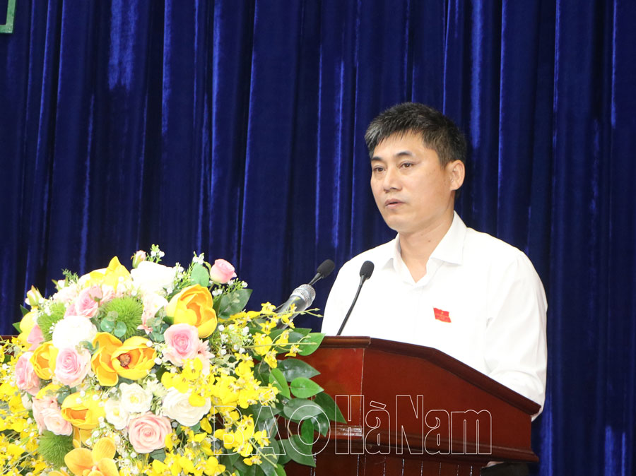 Lãnh đạo Sở Văn hóa, Thể thao và Du lịch trả lời ý kiến, kiến nghị của cử tri và chất vấn của đại biểu về các nội dung: đề nghị đầu tư hỗ trợ dự án mở rộng khu di tích Từ đường nhà thơ Nguyễn Khuyến; đầu tư kinh phí nâng cấp sửa chữa các di tích đình làng Ngọc Động (phường Hoàng Đông), đình làng Quan Phố (xã Chuyên Ngoại) đã được xếp hạng di tích lịch sử cấp Quốc gia; tỉnh có cơ chế hỗ trợ, ưu đãi người dân trong tỉnh khi tham quan các thắng cảnh, khu du lịch trong tỉnh (như giảm giá vé tham quan,...); giải pháp khắc phục những hạn chế (về kết nối tour, tuyến; chất lượng cơ sở lưu trú; lực lượng hướng dẫn viên;…) để phát triển bền vững du lịch tỉnh Hà Nam.