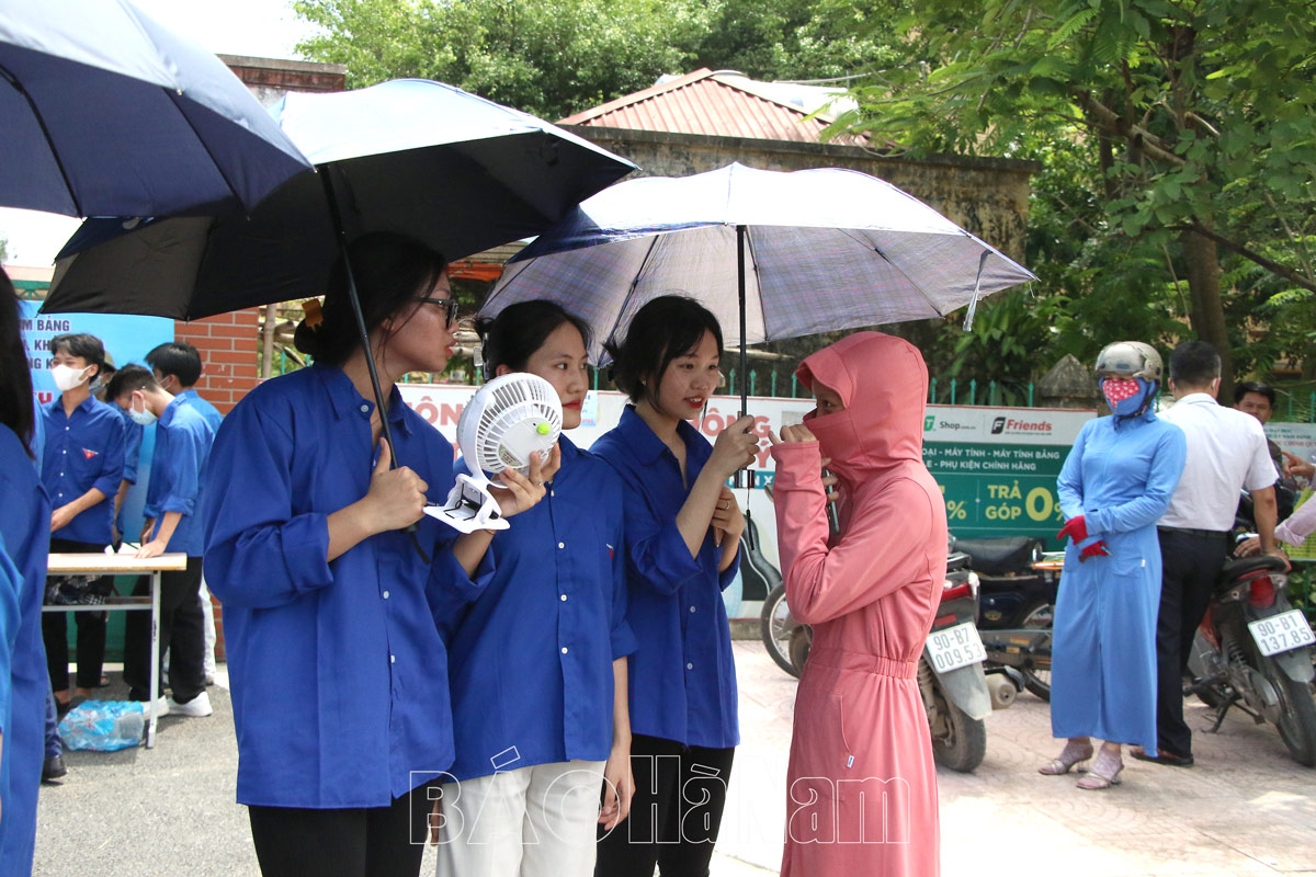 Trong 2 ngày 13 và 14/6, các lực lượng đoàn thanh niên ở các đội hình đã hỗ trợ hơn 5.000 chai nước, 307 thùng nước uống miễn phí, hơn 1.000 khăn ướt, trên 500 bút viết, trên 350 thước kẻ, compa, 3.042 quạt cầm tay, 100 áo, mũ tiếp sức, gần 70 chuyến xe ôm hỗ trợ sĩ tử với tổng trị giá gần 100 triệu đồng.