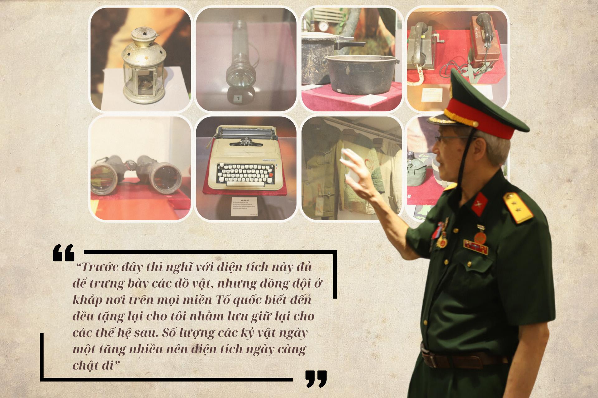 Đến năm 2002, sau khi về hưu, ông có điều kiện thực hiện cuộc hành trình đi tìm lại những kỷ vật từ thời chiến. Từ Bắc vào Nam rồi lên Tây Nguyên, nơi đâu có những người gìn giữ các kỷ vật từ thời chiến ông đều đi đến tận nơi, tận tay mình mang về. Khi thì vài chiếc huy hiệu, cái mũ tai bèo, chiếc áo, lúc vài con dao nhíp hay cuốn nhật ký còn viết dở…, mỗi kỷ vật đều mang dấu ấn một hành trình, một câu chuyện liên quan đến đồng chí, đồng đội. Ban đầu, những kỷ vật được ông xếp vào tủ rồi dần dần xếp vào tận bếp, để kín căn phòng trên tầng 3. Mỗi kỷ vật được đưa về, ông đều nhớ và lại ghi rõ ràng, từ mảnh áo đến chiếc mũ đều được làm tới 3 bộ hồ sơ, một do bảo tàng giữ, một nộp Sở Văn hóa, Thể thao và Du lịch, một gửi Cục Di sản. Hàng xóm chuyển nhà đi, ông mua lại mảnh đất bên cạnh nhà và xây lên một căn nhà rộng khoảng 40m2 với ý nguyện mở bảo tàng “Kỷ vật chiến tranh”.