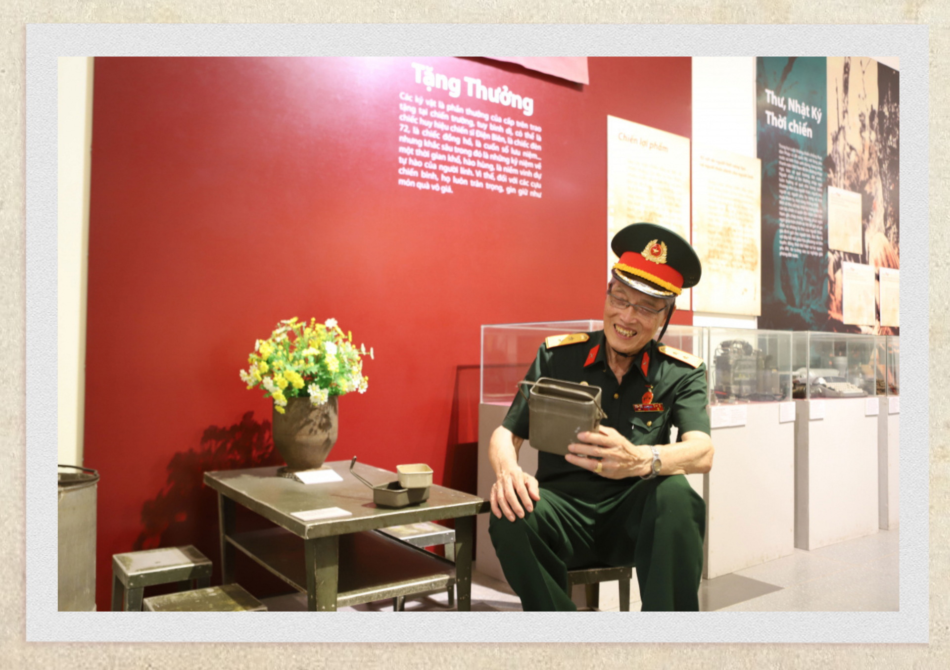 Một lần khác vào năm 2009, khi được ông Nguyễn Văn Diễn, số nhà 8, phường Nam Thanh, Thành phố Điện Biên Phủ cho biết, khi thi công công trình trên đồi A1 phát hiện chiếc mũ sắt của sĩ quan Pháp nhưng đã lấp lại. Được tin, ông đã lên Điện Biên cùng ông Diễn đến hiện trường tìm hiện vật. Phải mất nhiều ngày dùng cuốc, xẻng đào bới ông mới tìm được chiếc mũ ấy, và rất may được cả vỏ đạn ĐKZ mang về trưng bày. Còn chiếc ví da đã ngả màu theo thời gian lại gắn với câu chuyện về sự hy sinh thầm lặng của người nữ địch vận hoạt động trong thời kỳ chống Pháp. Năm 1950, ông Nguyễn Văn Trạc bị thực dân Pháp bắt đi lính. Năm 1952, từ trong lòng địch, một nữ địch vận đã bí mật đưa ông ra khỏi quân đội Pháp, quay về với cách mạng. Cô gái đã tặng ông Trạc một chiếc ví da với mong muốn món quà của cô sẽ là người bạn luôn đồng hành cùng ông. Sau này cô bị thực dân Pháp bắn chết trong khi đang làm nhiệm vụ. Cảm kích trước tấm lòng của nữ chiến sĩ địch vận, chiếc ví da được ông Trạc giữ bên mình như một báu vật, đến năm 1987, khi sắp qua đời, thì ông bàn giao lại cho em trai là ông Nguyễn Văn Quát thôn Thuận Vi, xã Bách Thuận, huyện Vũ Thư (Thái Bình). Sau 25 năm gìn giữ chiếc ví của anh trai, ông Quát đã tặng lại cho Bảo tàng “Kỷ vật chiến tranh”… Hay chiếc hũ sành đựng hạt đỗ của Mẹ Việt Nam Anh hùng Tạ Thị Uôn ở thành phố Nam Định, ông kể: Mẹ có 3 người con trai, sau khi 2 người anh hy sinh, người con út đã xung phong lên đường để trả nợ nước, thù nhà. Từ ngày anh lên đường, mỗi ngày mẹ bỏ vào hũ sành một hạt đậu xanh để vơi đi niềm thương nhớ con và cầu mong con chiến thắng trở về. Nhưng khi chiến tranh kết thúc cũng là lúc mẹ nhận được tờ giấy báo tử thứ 3. Từ đó mẹ luôn nâng niu chiếc hũ sành cho đến khi nó được đưa vào bảo tàng của ông thì mẹ yên tâm nhắm mắt.