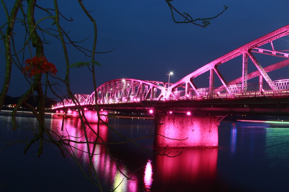 Cầu Trường Tiền có lịch sử hơn 100 năm, được coi là một trong những biểu tượng của cố đô Huế. Đây là một trong những cây cầu đầu tiên được xây dựng ở Đông Dương vào cuối thế kỷ XIX, đầu thế kỷ XX theo kỹ thuật và vật liệu mới của phương Tây với kết cấu thép. Trải qua những thăng trầm lịch sử, với vẻ duyên dáng của mình, cầu Trường Tiền và dòng sông Hương thơ mộng trở thành cảm hứng vô tận cho giới văn nghệ sĩ: "...Cầu cong như chiếc lược ngà/ Sông dài mái tóc cung nga buông hờ...". Ảnh: Võ Thạnh