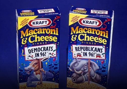 Năm 1996, tập đoàn Kraft đã sản xuất những hộp mỳ ống và phô mai đặc biệt để phân phát tại đại hội toàn quốc Đảng Cộng hòa và Đảng Dân chủ năm đó. Sợi mì thông thường được thay bằng mì tạo hình con lừa hoặc con voi.