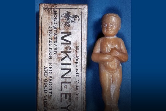 Một trong số những sản phẩm liên kết kỳ lạ nhất là xà phòng hình em bé của công ty Jergens. Loại xà phòng này xuất hiện trong cuộc bầu cử năm 1896. Cuộc đua năm đó diễn ra giữa ứng cử viên William McKinley của Đảng Cộng hòa và William Jennings Bryan của Đảng Dân chủ. Năm 1896, các công ty xà phòng như Jergens muốn thể hiện rằng công nghệ sản xuất mới cho phép họ tạo ra xà phòng đủ hình thù thay vì chỉ ở dạng bánh đơn điệu. Và họ đã lựa chọn tạo xà phòng hình em bé.
