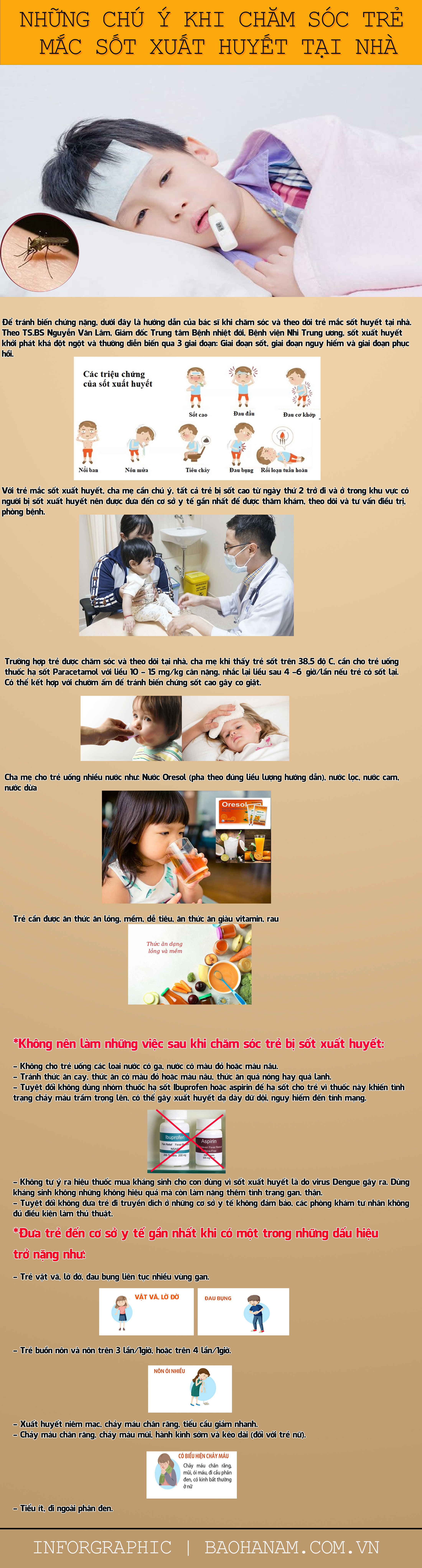 Những chú ý khi chăm sóc trẻ mắc sốt xuất huyết tại nhà