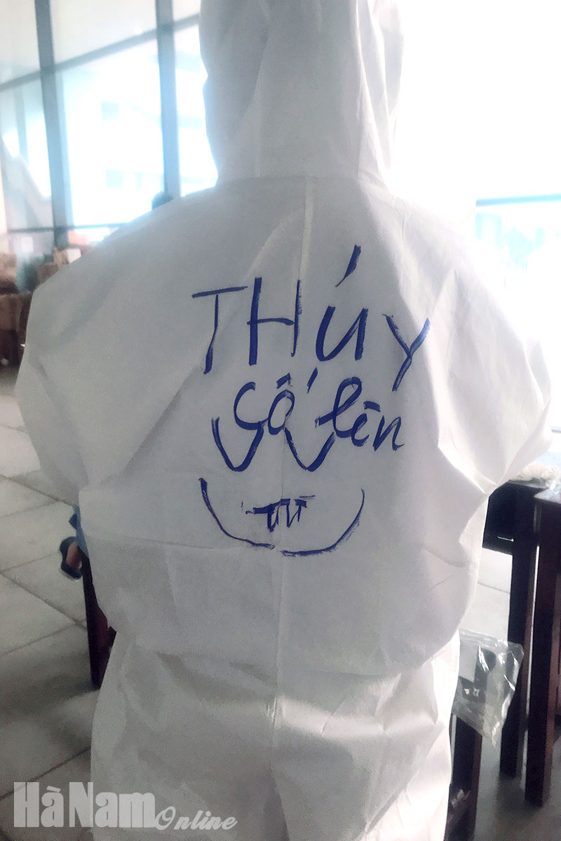 Đoàn cán bộ y tế Hà Nam được các đồng nghiệp tại BV Dã chiến số 9 đón tiếp khi mới đến.Họp bàn, phân công nhiệm vụ cho các thành viên trong đoàn khi bắt đầu tiếp nhận công việc.Các bác sỹ, điều dưỡng Hà Nam trước khi vào khu vực điều trị bệnh nhân Covid-19.Làm việc tại BV điều trị bệnh nhân Covid-19, trong bộ đồ bảo hộ kín mít không ai nhận ra ai các y, bác sy phải ghi tên lên phía sau lưng để nhận ra nhau. Ảnh điều dưỡng Nguyễn Thị Hằng (BVĐK Hà Nam).Với họ, mệt chỉ là cảm giác...Công việc rất nhiều, vất vả, nhưng đoàn Hà Nam luôn động viên nhau cố gắng để chung tay đẩy lùi Covid-19 tại "chảo lửa" dịch dã nóng bỏng TP Hồ Chí Minh.