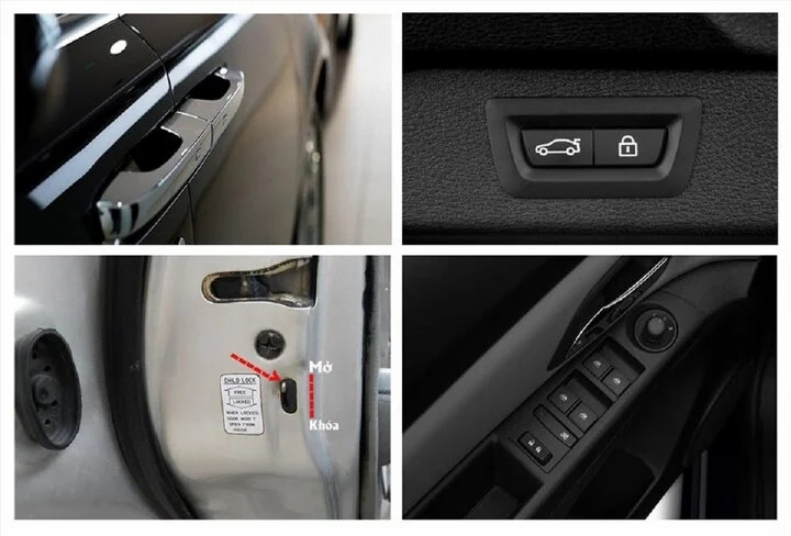 Gạt lẫy khóa phía trong cánh xe để ngăn trẻ tự ý mở cửa