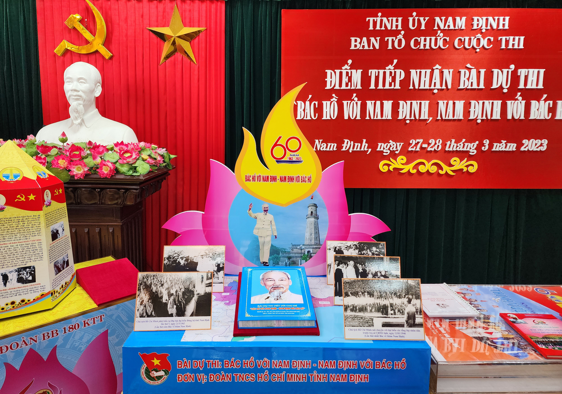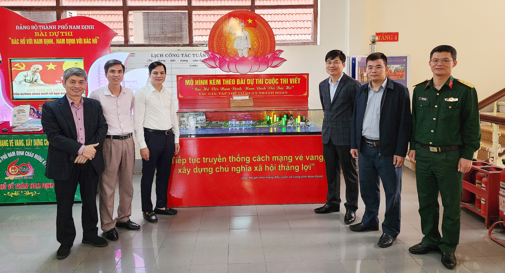 | Tác phẩm dự thi của Đoàn Thanh niên thành phố Nam Định mô phỏng một góc thành phố Nam Định thu nhỏ; các hình ảnh tư liệu 5 lần Bác Hồ về thăm Nam Định. |