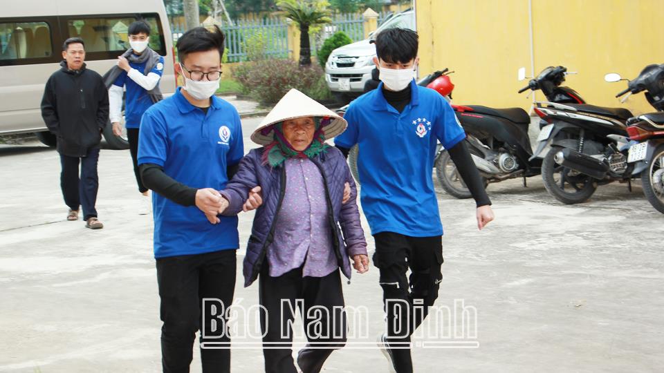| Sinh viên Trường Đại học Điều dưỡng Nam Định tham gia hoạt động tình nguyện khám sức khỏe cho người cao tuổi tại xã Bạch Long (Giao Thủy). |