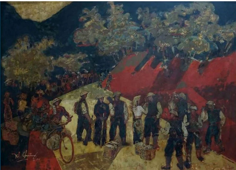 Tác phẩm sơn mài "Đường lên Điện Biên" của họa sĩ Trần Khánh Chương.