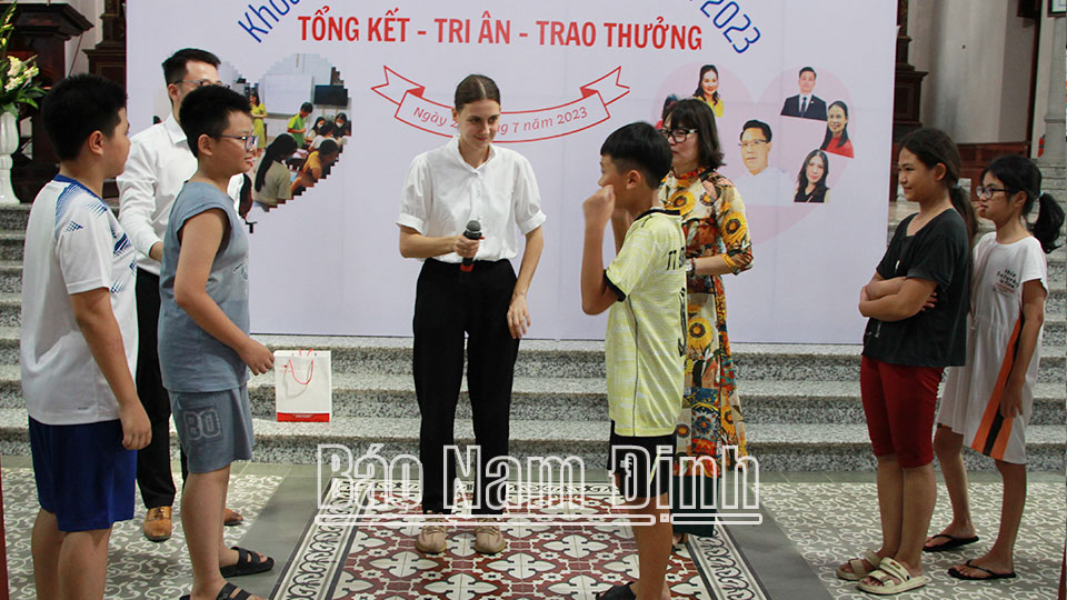 Những ngày hè vừa qua, tại Nhà thờ Khoái Đồng (thành phố Nam Định), các thầy, cô giáo dạy môn Tiếng Anh đã phối hợp mở các lớp học miễn phí dành cho học sinh bậc THCS. Có 3 lớp học được mở vào các buổi sáng trong tuần với gần 150 học sinh, do các cô giáo dạy giỏi tiếng Anh, chuyên viên giáo dục, giáo viên nước ngoài đang giảng dạy ở các trung tâm ngoại ngữ trên địa bàn thành phố Nam Định lên chương trình, giáo án giảng dạy.
