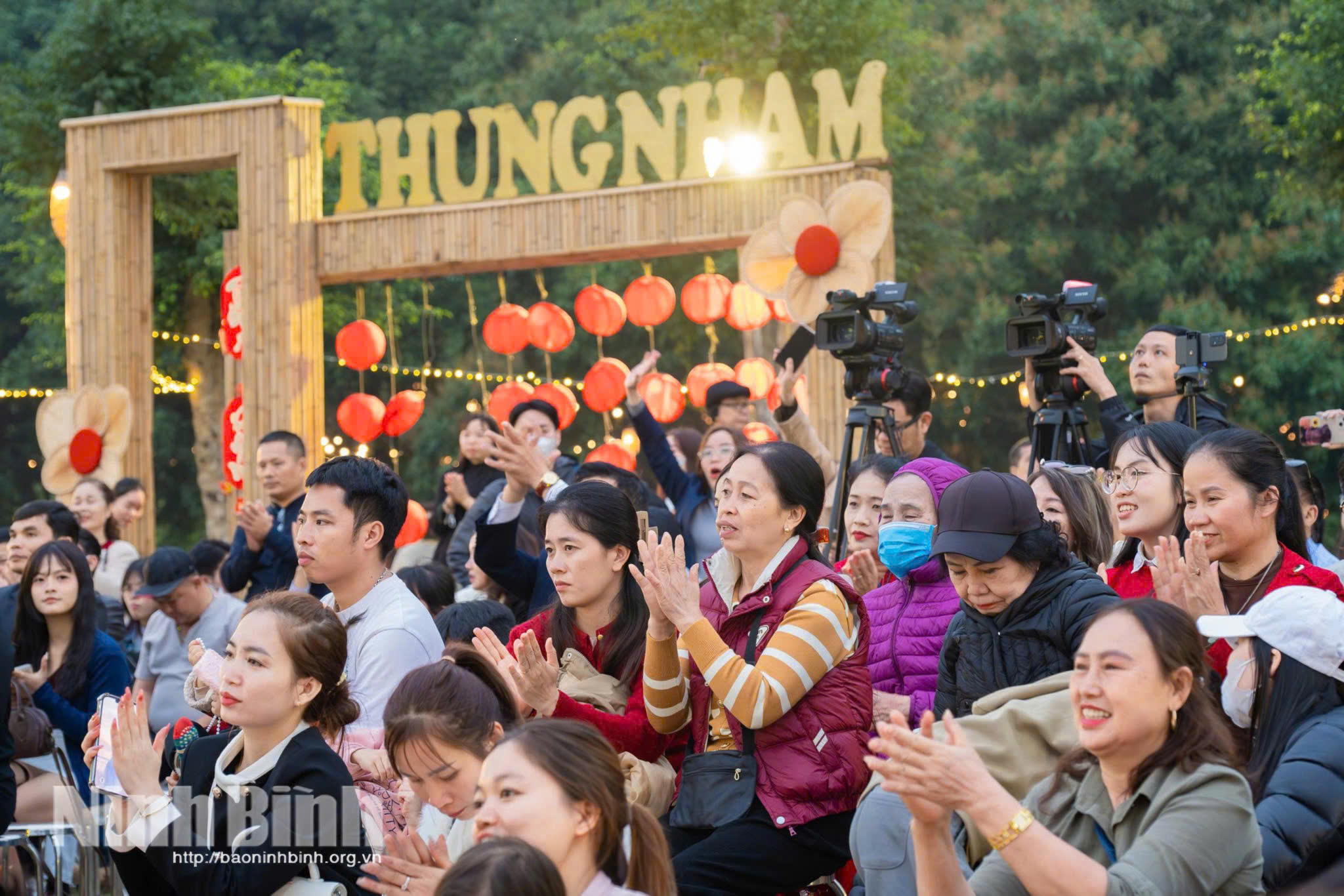 Du khách hào hứng theo dõi chương trình nghệ thuật tại Khu du lịch sinh thái Thung Nham.