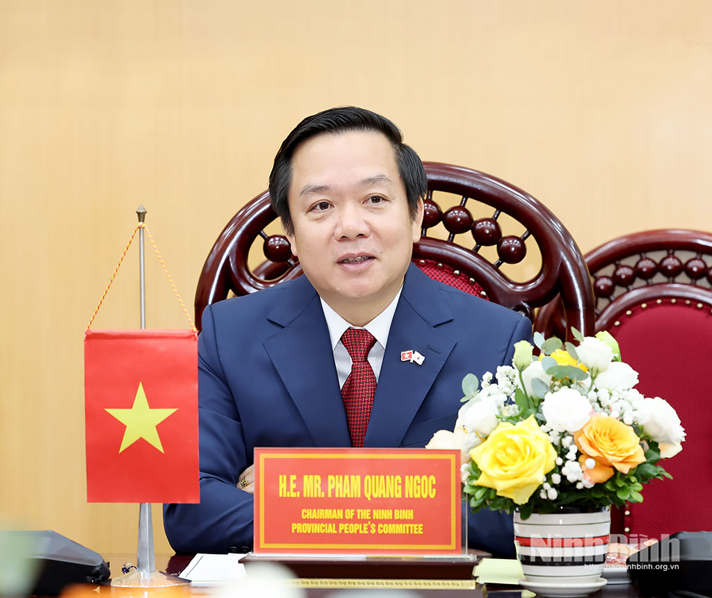 Phát biểu chào mừng, đồng chí Phạm Quang Ngọc, Phó Bí thư Tỉnh uỷ, Chủ tịch UBND tỉnh bày tỏ vui mừng, phấn khởi được đón tiếp và làm việc với Đoàn đại biểu cấp cao Chính quyền thành phố Asan do ngài Oh Sae Hyun, Thị trưởng thành phố làm Trưởng đoàn có chuyến thăm chính thức và chúc mừng ngay sau khi tỉnh Ninh Bình mới được thành lập; cá nhân ngài Thị trưởng đã dành thời gian sang thăm Ninh Bình để thúc đẩy mối quan hệ hợp tác giữa hai địa phương tiếp tục được duy trì và phát triển trong giai đoạn mới.