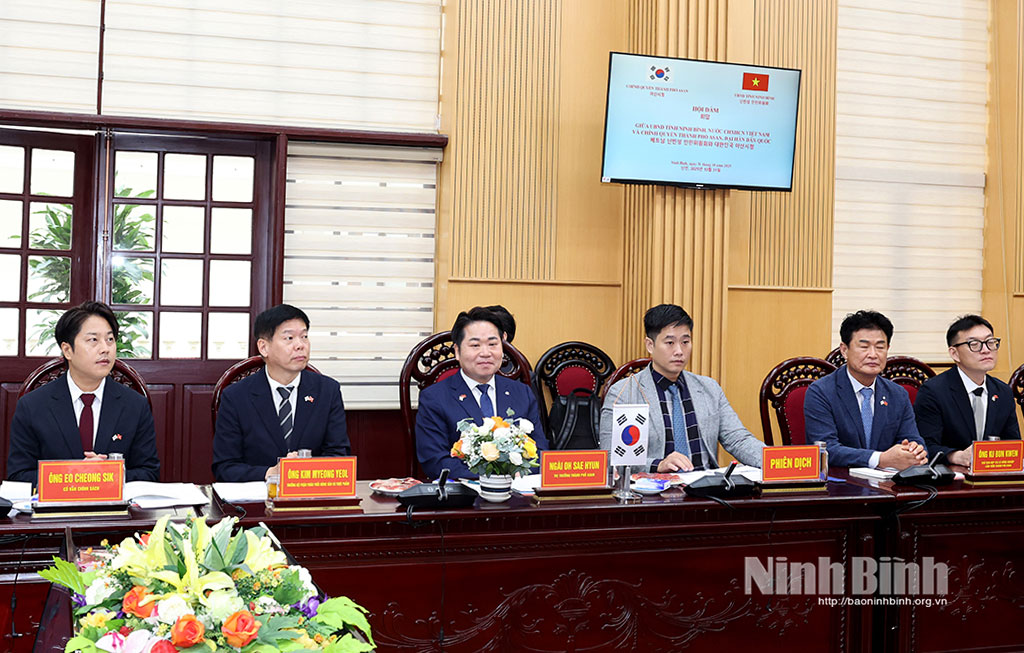 Trong bối cảnh kinh tế toàn cầu nhiều biến động, ngài Thị trưởng cũng mong muốn doanh nghiệp của hai địa phương sẽ cùng nhau xây dựng phương án hợp tác, đầu tư, hỗ trợ lẫn nhau, mang lại lợi ích chung. Đồng thời mong muốn, chính quyền tỉnh Ninh Bình sẽ có những hỗ trợ tối đa cho các doanh nghiệp của Hàn Quốc khi đầu tư tại tỉnh Ninh Bình, điển hình như Tập đoàn Hyundai đã đầu tư thành công tại Ninh Bình; được tỉnh Ninh Bình quan tâm, hỗ trợ, hưởng các ưu đãi về thuế, hỗ trợ tài chính, giảm giá thuê đất và các chính sách hỗ trợ khác dành cho doanh nghiệp nước ngoài đầu tư...