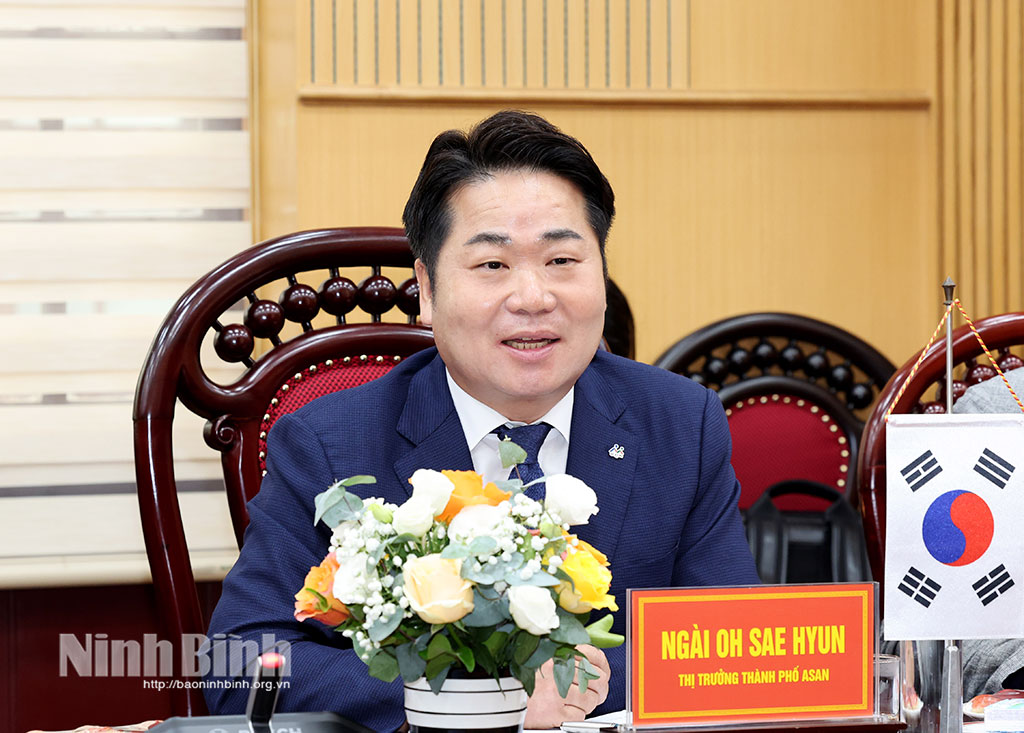 Trân trọng cảm ơn sự đón tiếp nồng hậu và những nỗ lực thúc đẩy tình hữu nghị giữa hai địa phương, Ngài Oh Sae Hyun, Thị trưởng thành phố Asan nhấn mạnh: Mối quan hệ kết nghĩa giữa Asan và Ninh Bình được ký kết từ năm 2016 và kể từ đó, hai bên đã duy trì nhiều hoạt động giao lưu đa dạng, bao gồm trao đổi thanh niên quốc tế, đoàn văn hóa nghệ thuật và chương trình đào tạo phát triển nông nghiệp...