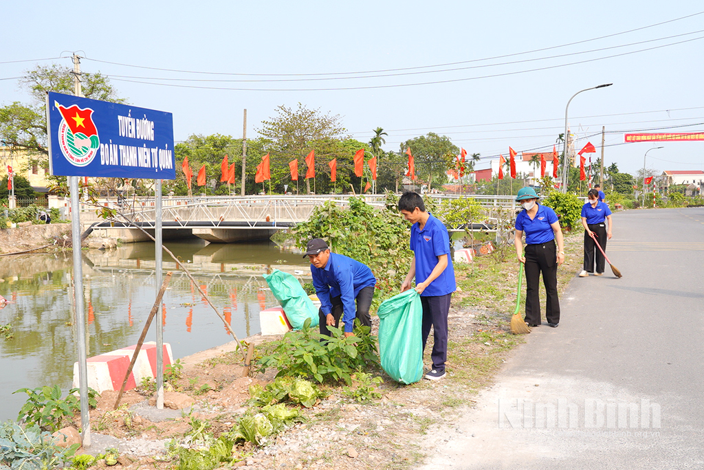 Đoàn viên, thanh niên xã Ninh Cường dọn vệ sinh tuyến đường Đoàn thanh niên tự quản trên địa bàn xã.