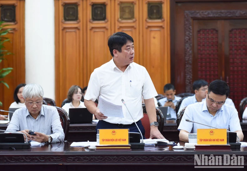 | Tổng giám đốc Tập đoàn Điện lực Việt Nam (EVN) Nguyễn Anh Tuấn báo cáo tại cuộc họp. |