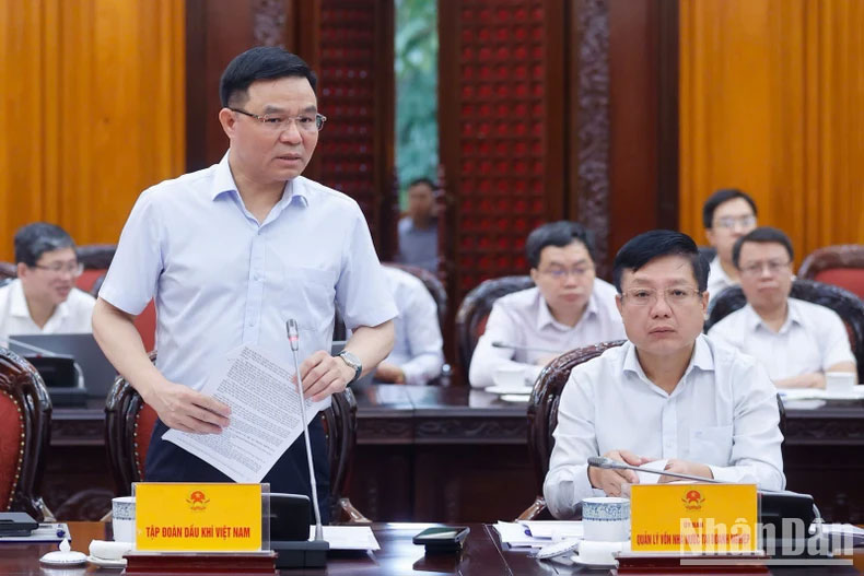 | Chủ tịch Tập đoàn Dầu khí Quốc gia Việt Nam (PVN) Lê Mạnh Hùng báo cáo tại cuộc họp. |