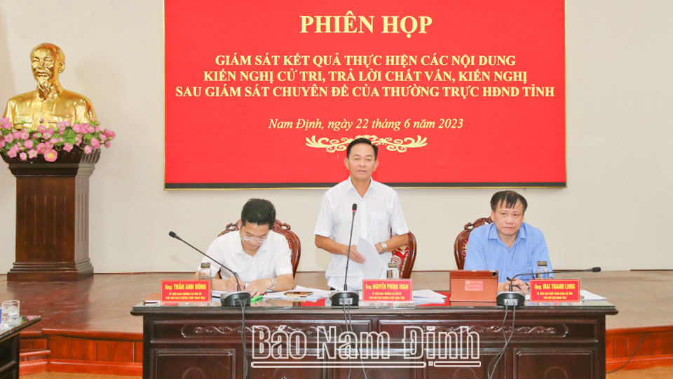 Kết luận buổi giám sát, đồng chí Phó Chủ tịch Thường trực HĐND tỉnh Nguyễn Phùng Hoan đánh giá cao UBND tỉnh đã lãnh đạo, chỉ đạo các ngành chức năng, UBND các huyện, thành phố và đơn vị có liên quan tập trung giải quyết và trả lời những kiến nghị của cử tri, nội dung chất vấn và kiến nghị sau giám sát chuyên đề của Thường trực HĐND tỉnh. Đồng thời đề nghị UBND tỉnh tiếp tục chỉ đạo các cấp, các ngành tập trung tháo gỡ những khó khăn, vướng mắc để sớm giải quyết dứt điểm một số vấn đề được cử tri quan tâm, kiến nghị nhiều và các kiến nghị sau giám sát chuyên đề. Các Ban của HĐND tỉnh, tổ đại biểu HĐND tỉnh thường xuyên theo dõi, giám sát việc giải quyết kiến nghị của cử tri, việc thực hiện nội dung chất vấn, giám sát của lãnh đạo các cơ quan, đơn vị, địa phương, góp phần thúc đẩy phát triển kinh tế - xã hội của tỉnh./.