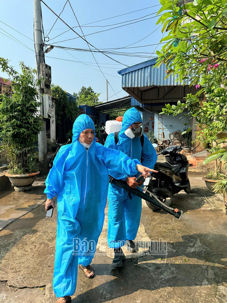 | Phun khử khuẩn công tác vệ sinh môi trường sau khi nước rút. |