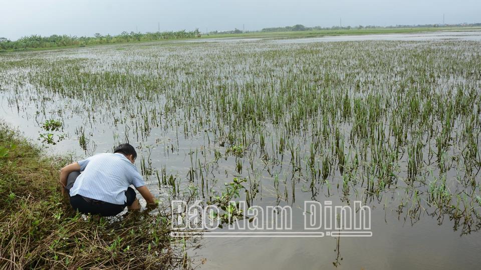 Ngay sau khi bão tan, nước lũ trên hệ thống các sông rút dần, đồng chí Phó Chủ tịch Thường trực UBND tỉnh Trần Anh Dũng cùng lãnh đạo các ngành chức năng, nhất là ngành Nông nghiệp đã trực tiếp đi kiểm tra tại các vùng bị ảnh hưởng bởi lũ và có những chỉ đạo cụ thể các ngành, các địa phương thực hiện đồng bộ các biện pháp để tiêu nước cứu lúa, cây màu, bảo vệ sản xuất. Ghi nhận, đánh giá cao sự nỗ lực, cố gắng ứng phó với cơn bão số 3 của các ngành, địa phương, nhân dân, đồng chí Phó Chủ tịch Thường trực UBND tỉnh yêu cầu Sở NN và PTNT cần thống kê, nghiên cứu, tham mưu, đề xuất cơ chế hỗ trợ nông dân bị thiệt hại do bão, lũ gây ra. Theo đánh giá của Sở NN và PTNT, vụ mùa năm 2024, tổng diện tích gieo cấy lúa của tỉnh là 70.761ha. Các huyện Ý Yên, Hải Hậu, Giao Thủy... lúa mùa trỗ 70-75% diện tích; các huyện Xuân Trường, Nghĩa Hưng lúa trỗ ít hơn được khoảng 20-25% diện tích. Mưa bão kéo dài đã làm khoảng 15 nghìn ha (20% diện tích) diện tích lúa ngập nặng (ngập trắng và ngập cổ đòng). Trong đó, huyện Nam Trực bị ngập nhiều nhất với 4.497ha (60% diện tích); thành phố Nam Định 1.600ha (50% diện tích); Ý Yên 3.040ha (23% diện tích); Trực Ninh 1.630ha (25% diện tích); Xuân Trường 1.183ha (22% diện tích); Vụ Bản 1.000ha (12% diện tích); Nghĩa Hưng 1.060ha (11% diện tích)... Thực hiện chỉ đạo của UBND tỉnh, từ ngày 13/9 đến nay, các trạm bơm tập trung hoạt động bơm tiêu nước chống úng. Hiện nay, mực nước trên các sông: Hồng, Đào, Đáy, Ninh Cơ đã rút nhưng vẫn đang ở mức cao, gây khó khăn cho công tác tiêu úng, cứu lúa màu. Mực nước ngập trong ruộng lúa tiêu rút được từ 25-30cm. Các vùng trũng tiêu thoát chậm, nhất là ở các huyện Nam Trực, Trực Ninh, thành phố Nam Định... Theo đánh giá của Sở NN và PTNT, diện tích lúa bị ngập từ ngày 9/9 đến ngày 15/9 (ngập 6 ngày) có khoảng trên 5.000ha bị mất trắng và trên 10 nghìn ha bị ảnh hưởng đến năng suất, sản lượng. Đối với diện tích tiêu thoát nước tốt, cây lúa hồi phục, đòng vươn và bắt đầu trỗ bông, khả năng bị thiệt hại từ 30-40% năng suất. Cùng với cây lúa, diện tích cây rau màu hè thu cũng bị thiệt hại 2.236ha (25% diện tích). Diện tích bị thiệt hại trên 70% năng suất là 1.225ha; thiệt hại từ 30-70% năng suất là 1.012ha... Dự kiến tổng thiệt hại khoảng 370 tỷ đồng.