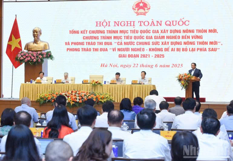Chiều 22/6, tại trụ sở Chính phủ, Thủ tướng Phạm Minh Chính chủ trì Hội nghị toàn quốc tổng kết các Chương trình mục tiêu quốc gia xây dựng nông thôn mới và giảm nghèo bền vững; các phong trào thi đua “Cả nước chung sức xây dựng nông thôn mới” và “Vì người nghèo - Không để ai bị bỏ lại phía sau” giai đoạn 2021-2025.