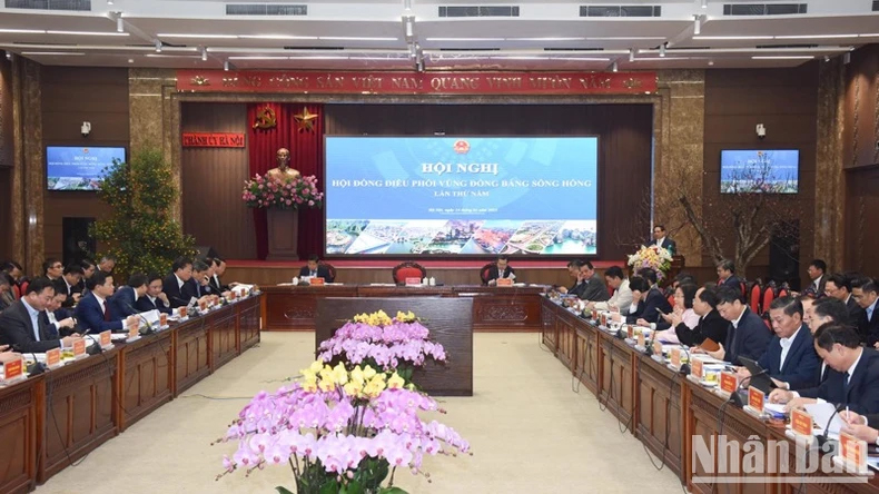 Sáng 14/1, tại Hà Nội, Thủ tướng Phạm Minh Chính - Chủ tịch Hội đồng điều phối Vùng đồng bằng sông Hồng chủ trì Hội nghị lần thứ năm của Hội đồng với chủ đề “Tăng trưởng kinh tế hai con số - Vùng đồng bằng sông Hồng tiên phong bước vào kỷ nguyên mới” để thảo luận 2 nội dung báo cáo về tình hình triển khai các nhiệm vụ năm 2024, kế hoạch năm 2025 của Hội đồng; công bố Quy hoạch Thủ đô Hà Nội thời kỳ 2021-2030, tầm nhìn đến năm 2050 và Điều chỉnh Quy hoạch chung Thủ đô Hà Nội đến năm 2045, tầm nhìn đến năm 2065. Cùng dự có lãnh đạo các bộ, ngành Trung ương, các địa phương trong vùng.