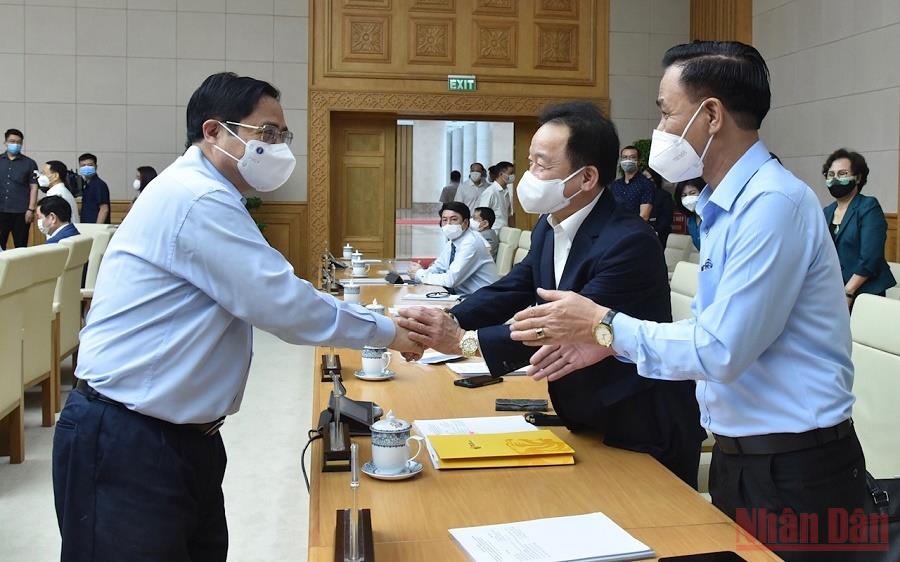 Phát biểu ý kiến mở đầu hội nghị, Thủ tướng Phạm Minh Chính nêu rõ, từ khi đợt dịch lần thứ tư bùng phát đến nay, chúng ta đã có những cuộc gặp với doanh nghiệp trong nước và nước ngoài. Cách đây hơn 1 tháng, Chính phủ đã có cuộc gặp với cộng đồng doanh nghiệp và sau đó ban hành Nghị quyết 105/NQ-CP để giải quyết các khó khăn. Hôm nay, Chính phủ muốn gặp các doanh nghiệp chủ yếu là trong nước. Chính phủ cố gắng đáp ứng các yêu cầu của cộng đồng doanh nghiệp.