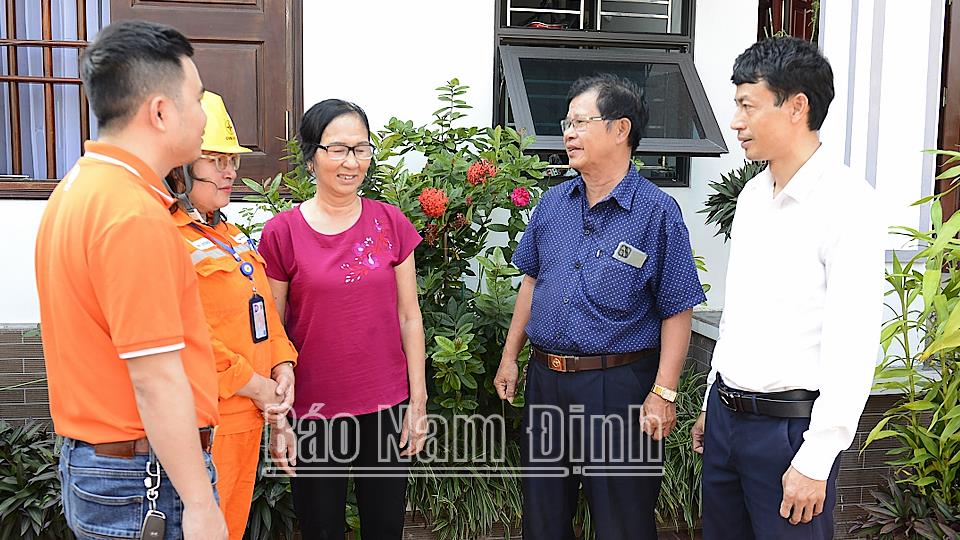 | Lực lượng chức năng tuyên truyền, vận động người dân xã Bình Hòa (Giao Thủy) tránh xa hiểm họa từ ma túy. |