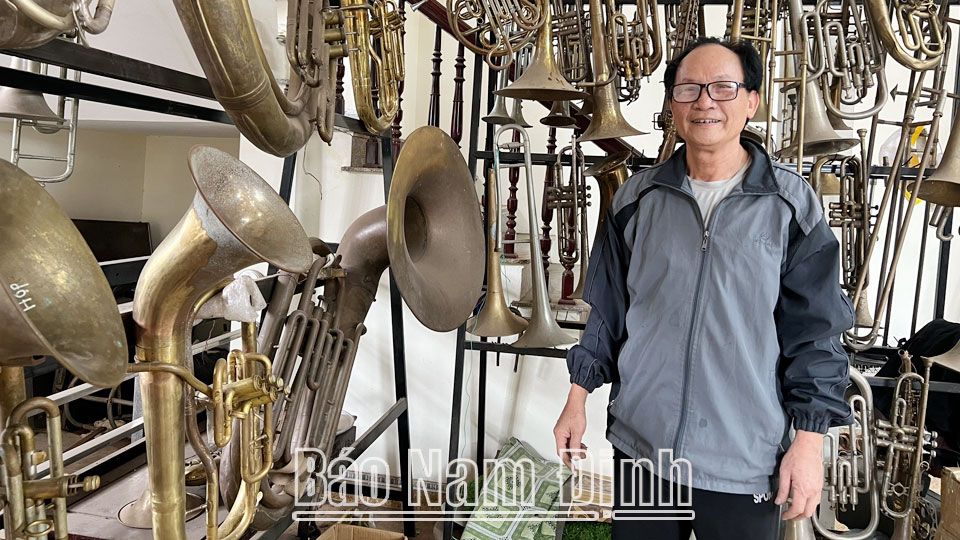 | Giáo dân xứ Trại Đáy, xã Hải Minh (Hải Hậu) duy trì nghề làm kèn đồng. Ảnh: Lam Hồng |