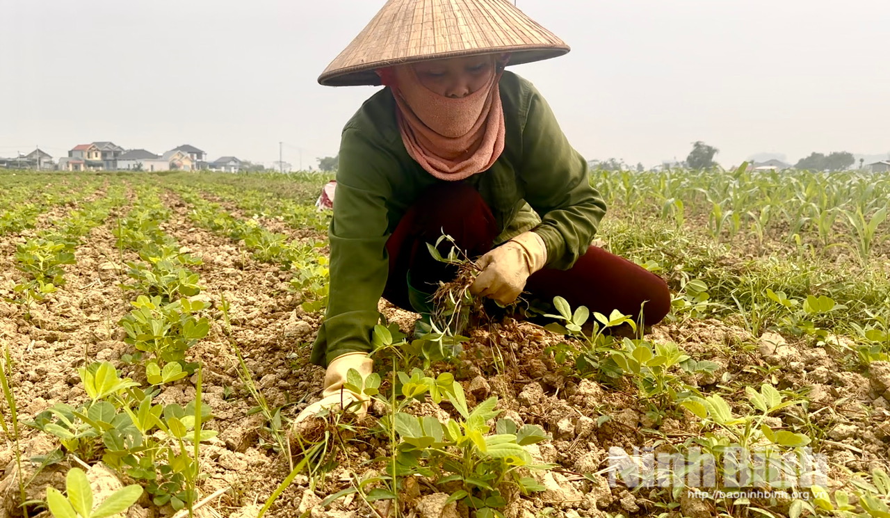 Nông dân xã Phú Long nhọc nhằn chăm bón cho những diện tích lạc đang bị khô hạn.