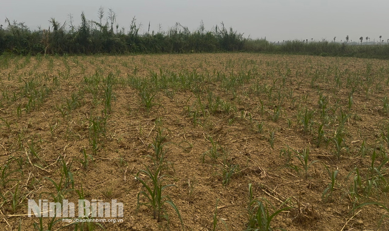 Tại xã Cúc Phương, tình hình cũng không khả quan hơn. Chị Đinh Thị Thơm (thôn Nga 2) nhìn 4 sào ngô đã tra giống gần 2 tháng nhưng chỉ cao bằng gang tay mà bùi ngùi: “Ngô là cây chịu hạn tốt mà năm nay hạn quá, cây kém phát triển, ban đêm có tí sương thì còn tươi lại được một chút, ngày nắng cây lại héo queo. Năm ngoái, 4 sào ngô thu được hơn 1 tấn để chăn nuôi bò, gà, mà năm nay hạn hán này chắc không có năng suất. Tuy nhiên, vùng này bao nhiêu năm vẫn vậy, phụ thuộc hết vào nước trời nên việc trồng cấy cứ thuận theo thời tiết thôi”.