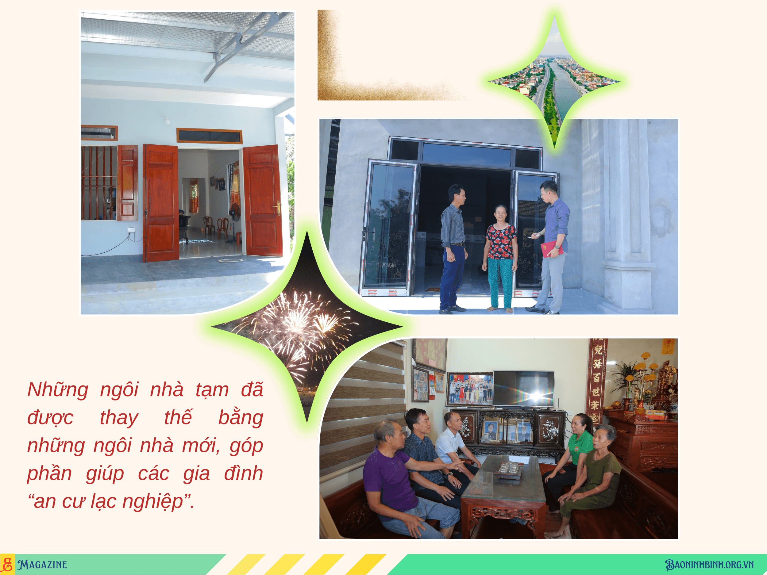 Phong trào xóa nhà tạm, nhà dột nát ở Ninh Bình thời gian qua không chỉ dựng nên những mái nhà mới, mà còn thắp sáng niềm tin, tình người và sự gắn kết trong cộng đồng về sự quan tâm của Đảng, Nhà nước. Từ những doanh nhân đầy nhiệt huyết đến những cựu chiến binh, chức sắc tôn giáo sống “tốt đời đẹp đạo” tất cả đã cùng hòa chung một nhịp, viết nên câu chuyện đẹp về lòng nhân ái và trách nhiệm xã hội. Để từ đó những hộ nghèo, cận nghèo, gia đình người có công sẽ có một tương lai tươi đẹp hơn, những mảnh đời khó khăn sẽ có cơ hội vươn lên, chung sức xây dựng quê hương ngày càng phát triển.