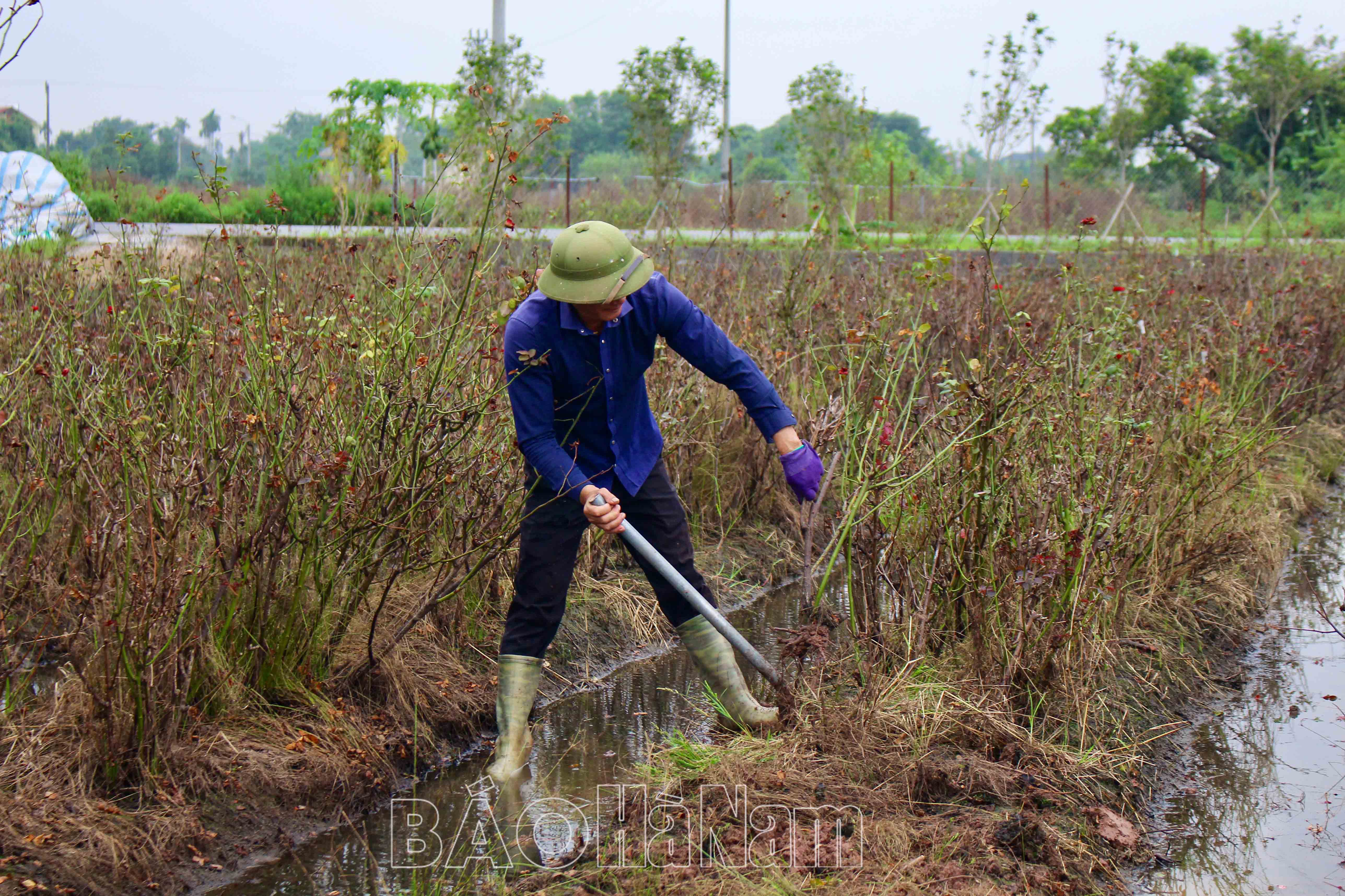 Người dân gieo trồng lại diện tích rau màu sau mưa lũ.Anh Nguyễn Bá Quyết (thôn 5, Phù Vân) dọn dẹp vườn hồng sau mưa lũ, chuyển sang trồng cây hoa ngắn ngày để kịp phục vụ thị trường hoa dịp Tết.