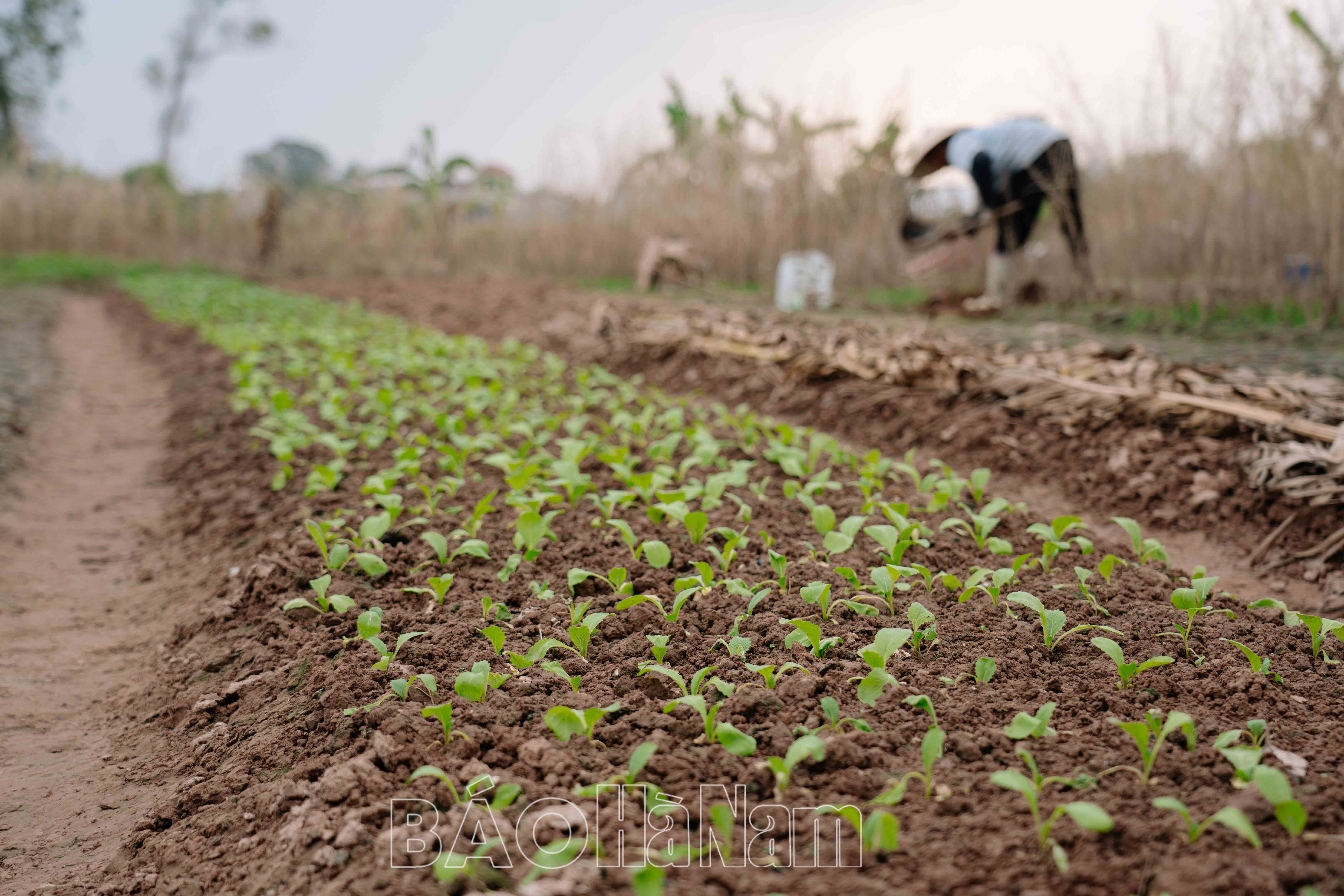 Tương tự, gia đình ông Trần Văn Khu (thôn 3, Phù Vân), do ảnh hưởng của hoàn lưu bão số 3, gia đình ông mất trắng 3 sào ruộng trồng rau màu và hoa cúc. Nhưng ngay khi nước rút, đất khô, ông Khu cũng như nhiều nông dân khác trong thôn lại bắt tay ngay vào việc làm đất, trồng ra. Ông chuyển đổi sang trồng rau cải ngồng, dự kiến khoảng 20 - 25 ngày nữa sẽ cho thu hoạch.