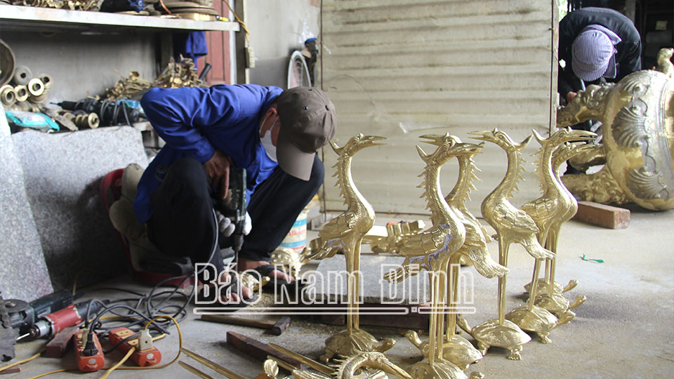 | Nông dân thị trấn Lâm phát triển nghề đúc đồng truyền thống. |