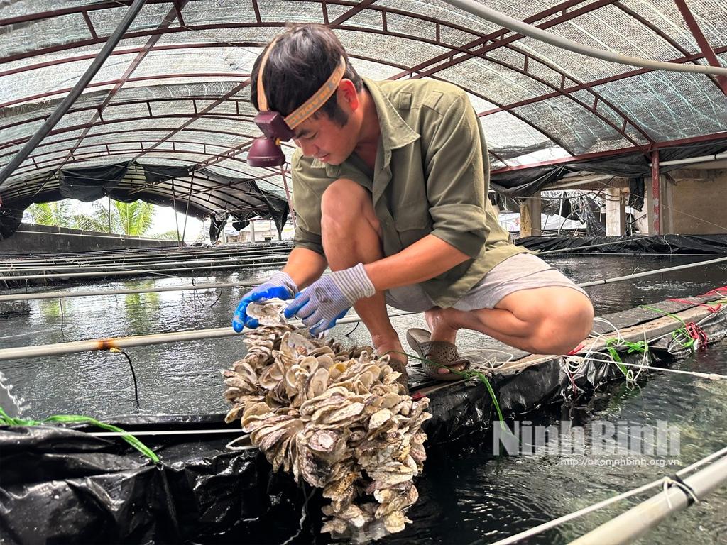 Bên cạnh con tôm thì ngao cũng là đối tượng nuôi cho hiệu quả kinh tế cao, đặc biệt từ năm 2023 khi con ngao tỉnh ta chính thức được cấp giấy chứng nhận ASC - một tấm “Visa Vip” đưa sản phẩm ngao vươn tới nhiều thị trường khó tính như châu Âu, Mỹ. Ngoài ra, Ninh Bình còn được coi là thủ phủ của ngao, hàu giống với hàng trăm trại giống quy mô lớn, doanh thu nhiều tỷ đồng. Đối với vùng thủy sản nước ngọt, người nuôi cũng không đứng ngoài vòng xoáy của khoa học công nghệ, diện tích nuôi trên ao nổi, thâm canh, được mở rộng và phát triển mạnh với nhiều đối tượng nuôi mới, có giá trị cao như tôm càng xanh, chạch sụn, trai nước ngọt lấy ngọc, ốc nhồi, ếch...