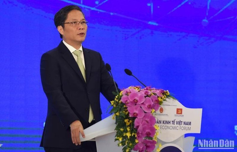 | Đồng chí Trần Tuấn Anh, Ủy viên Bộ Chính trị, Trưởng Ban Kinh tế Trung ương phát biểu tại Phiên toàn thể cấp cao Diễn đàn Kinh tế Việt Nam lần thứ 5. |