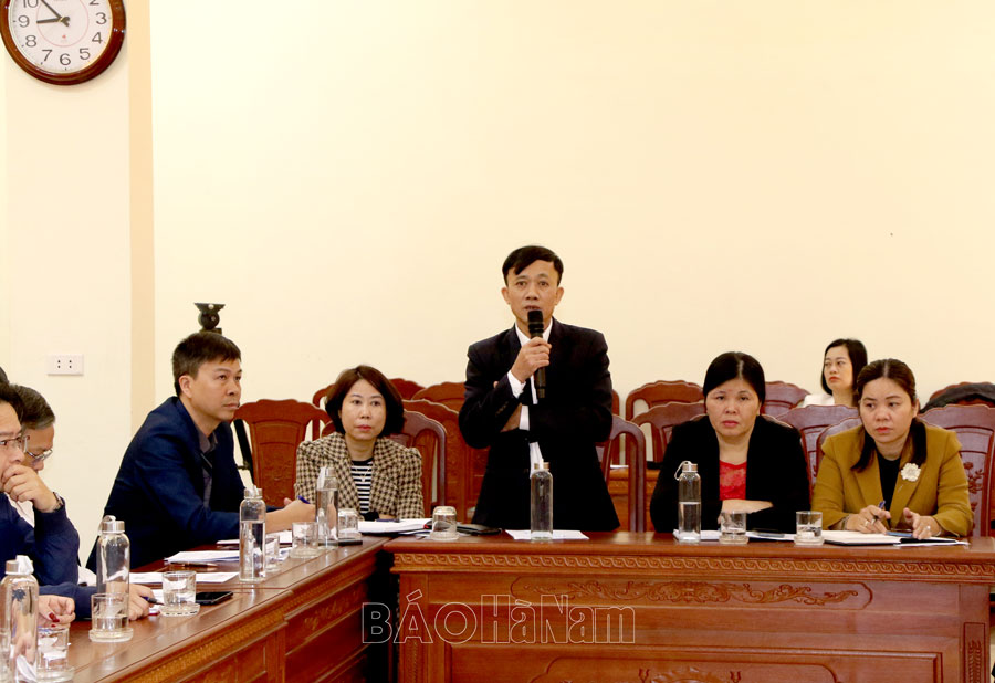 Lãnh đạo Trung tâm Y tế huyện Bình Lục phát biểu ý kiến về nội dung Dự thảo Nghị quyết.