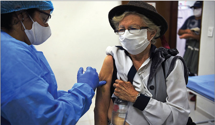 Nhân viên y tế tiêm vaccine Covid-19 cho người cao tuổi. Ảnh: Lancet