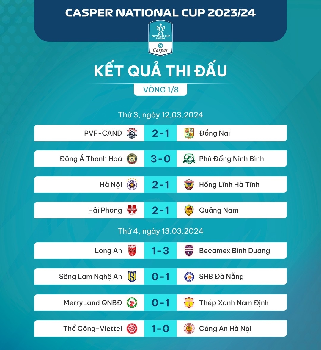 | Kết quả thi đấu vòng 1/8 Cúp Quốc gia 2023/2024. |
