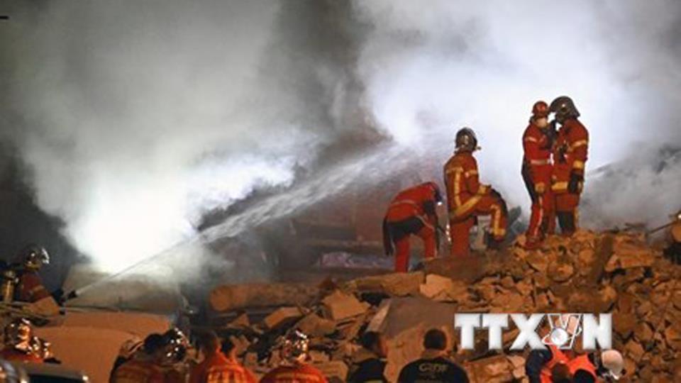 | Lực lượng cứu hỏa làm nhiệm vụ tại hiện trường vụ sập nhà ở thành phố Marseille, miền Nam Pháp. (Ảnh: AFP/TTXVN) |