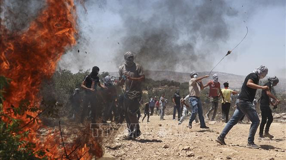 | Người biểu tình Palestine đụng độ với lực lượng an ninh Israel tại Beita, phía nam thành phố Nablus của Bờ Tây. (Ảnh tư liệu: AFP/TTXVN) |