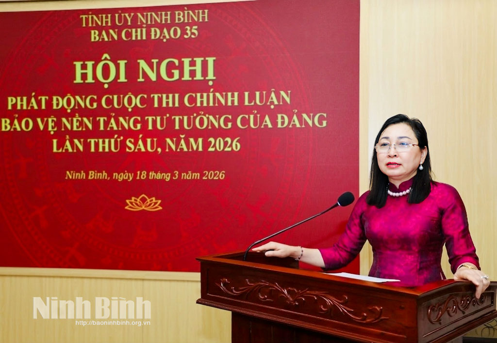 Chiều 18/3, Ban Chỉ đạo 35 Tỉnh ủy tổ chức hội nghị phát động Cuộc thi chính luận về bảo vệ nền tảng tư tưởng của Đảng lần thứ Sáu, năm 2026 (Cuộc thi). Đồng chí Đinh Thị Lụa, Phó Bí thư Thường trực Tỉnh ủy, Trưởng Ban Chỉ đạo 35 Tỉnh ủy dự và phát động Cuộc thi.