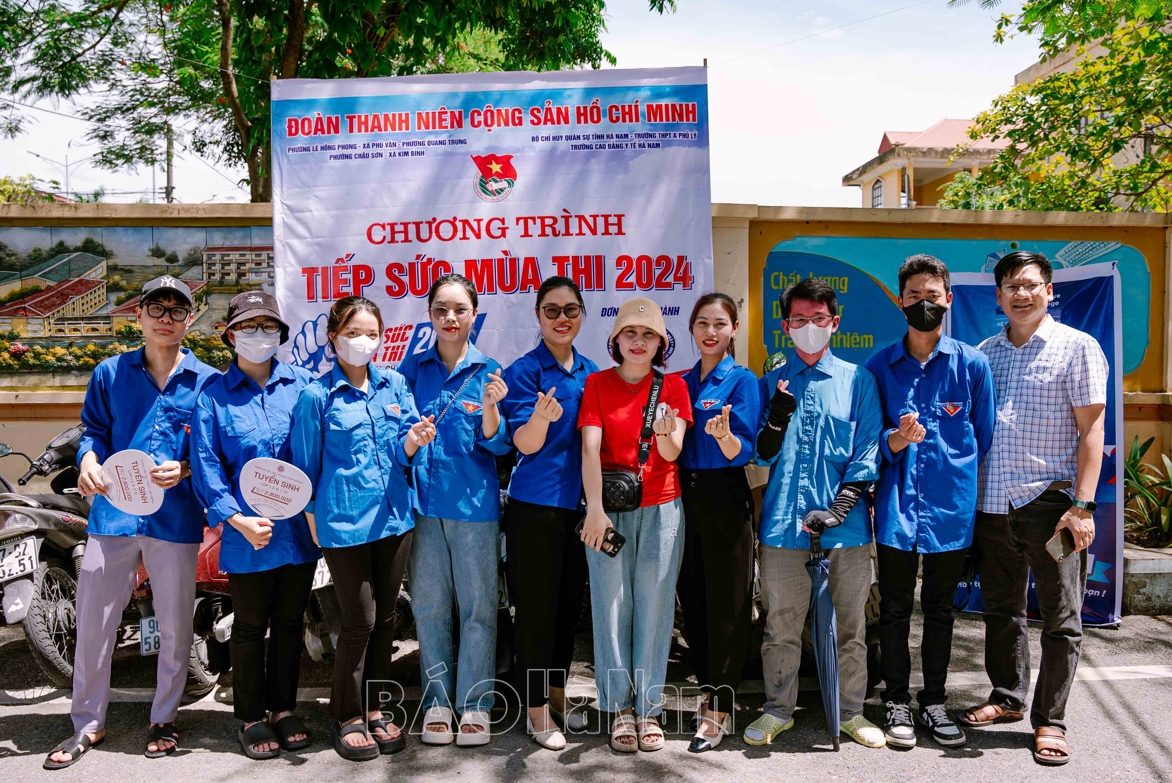 Đội tình nguyện tiếp sức mùa thi vào 10 năm học 2024-2025 tại điểm thi Trường THPT A Thanh Liêm.